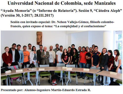 Informe presentado en la Sesión 8, Versión 30 de la "Cátedra Aleph". Universidad Nacional de Colombia, Sede Manizales, 21 de marzo de 2017