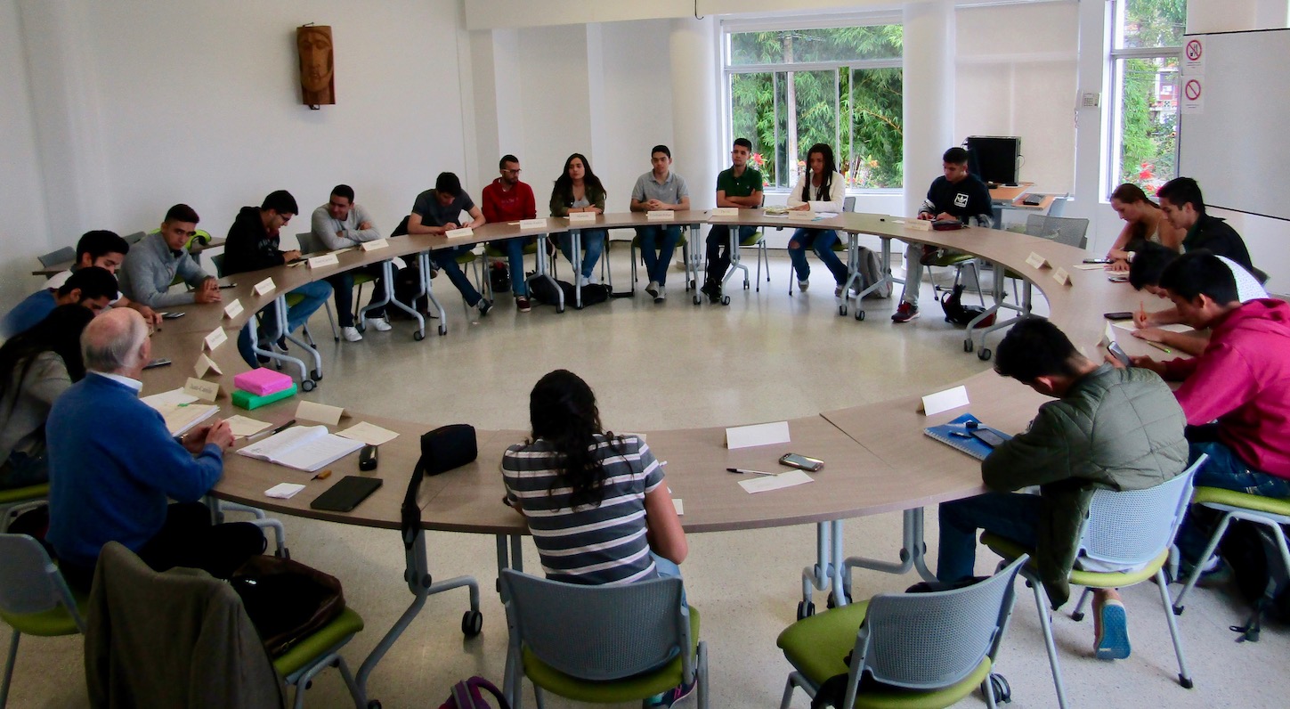 Es martes 28 de marzo del 2017, no son más de las 9:10 de la mañana y el recinto en el que acostumbramos a desarrollar nuestra Cátedra Aleph ya tenía algunos asistentes. No se trató de una sesión usual porque las sillas más próximas a la puerta del recinto ya estaban ocupadas por cuatro personas: el docente Andrés Salas, director del Centro de Idiomas de la sede; la profesora Luz-Stella Cardona, gestora de proyectos desde la perspectiva de la complejidad; Carlos-Enrique Ruiz, ingeniero de caminos y de crepúsculos; y Nelson Vallejo-Gómez, filósofo franco-colombiano e invitado especial de la sesión. Fue tan inusual que varios de los participantes debimos acomodarnos en asientos distintos a los que normalmente usamos, suponiendo desde ese momento y desde esa nueva posición el acercamiento a un conocimiento de nuevas ideas, perspectivas y propuestas que nuestro invitado especial estaba a punto de exponer.